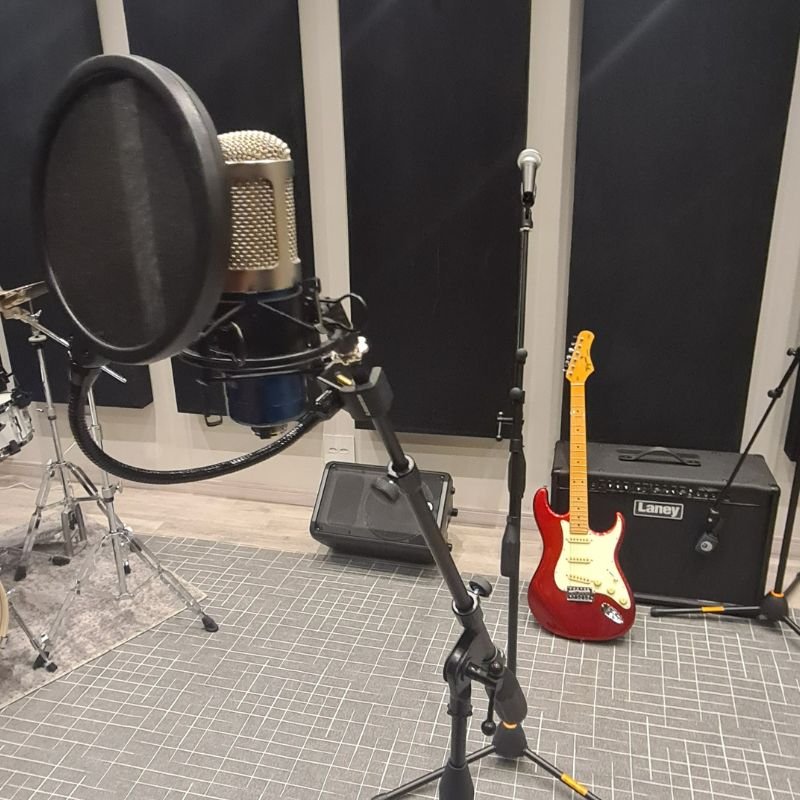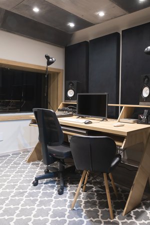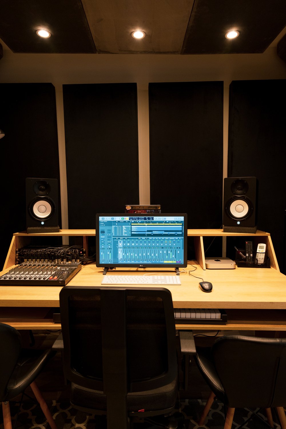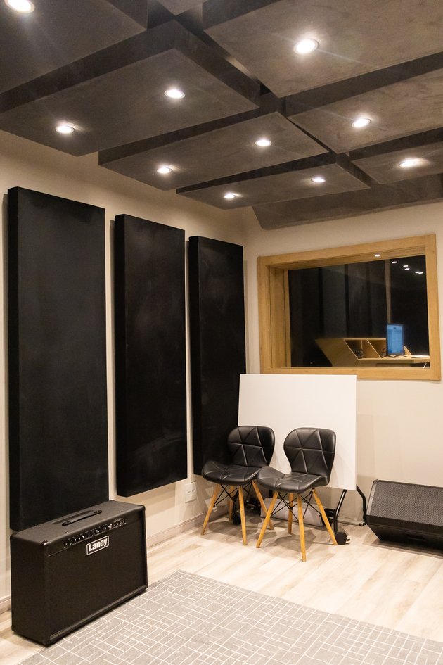 Estúdio de Gravação completo, composto por uma sala de execução e uma sala de controle, ambas projetadas com a mais alta qualidade em isolamento e tratamento acústico. Conta com um visual atraente, com móveis e cenários adaptáveis, proporcionando um ambiente propício para diversos tipos de produções, inclusive captação de imagem.